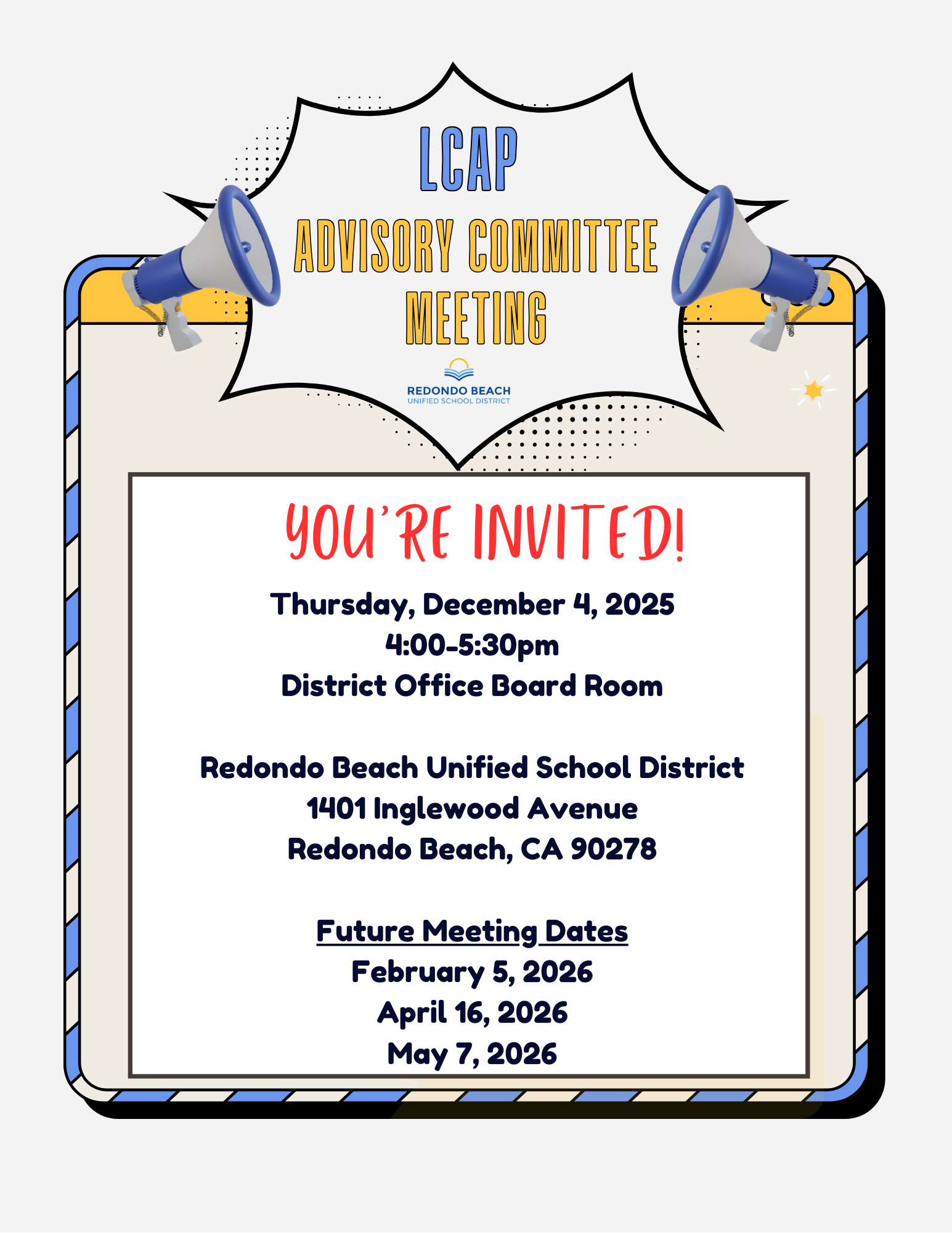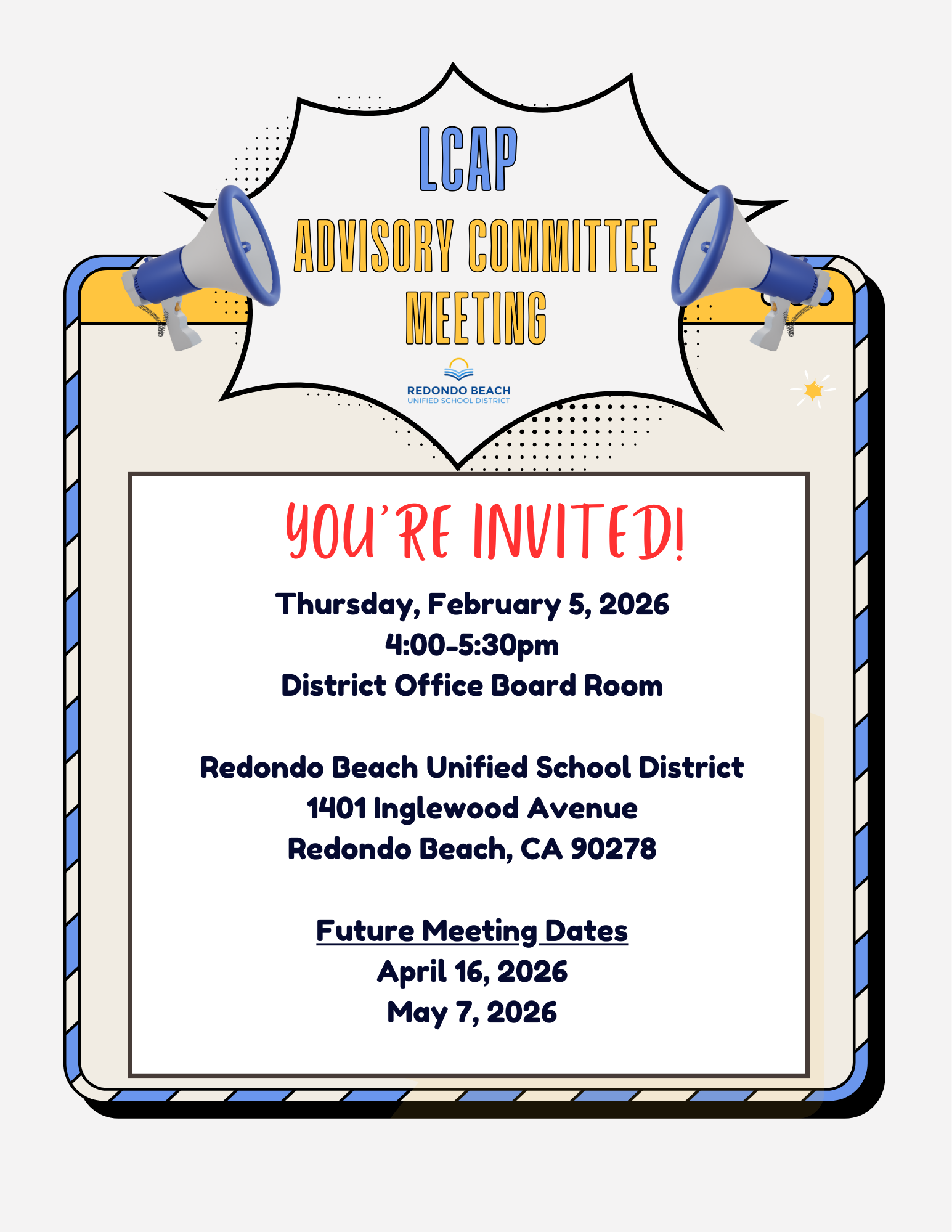 The District has consults with stakeholder groups, including RBUSD's Board of Education, School Site Councils, parent advisory groups, students, administrators and each of the school district’s employee associations (RBTA and CSEA). We appreciate the support and work of the committee members in the monitoring and drafting of RBUSD's LCAP. See below RBUSD LCAP Advisory Committee members for the 2025-2026 school year: